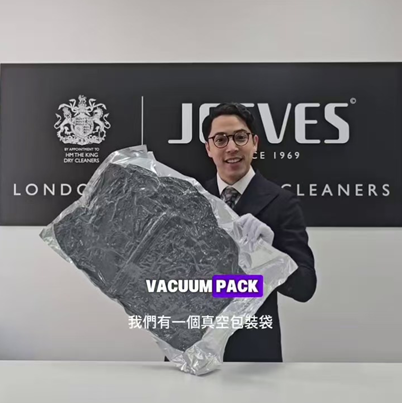 本月的會員推廣重點是我們的專業真空包裝服務。一般家用真空袋只會抽走空氣,容易令衣物無法呼吸,而且若衣物未經妥善清潔而存放,便有機會出現氧化或長期損耗。